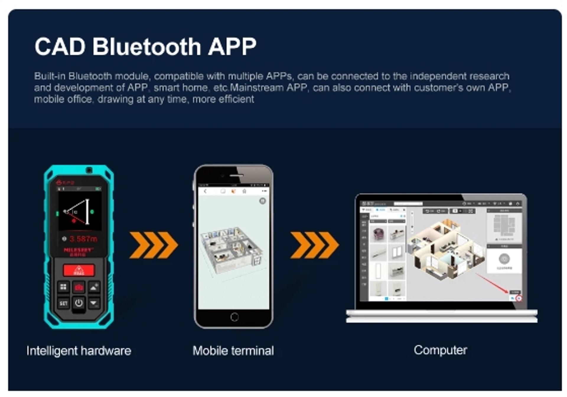 קומפקטי, קשוח ועמיד, עם 16 מצבי מדידה, דיוק של ±1.5 מ"מ יכולת מדידה עד 100 מ' מטר. מבית חברת הענק הסינית Shenzhen Mileseey Technology Co. Ltd. המכשיר מוגן במארז פלסטיק מיוחד, עמיד ובעל יכולת ספיגת מכות / נפילות., קומפקטי ונוח לאחיזה ונשיאה, ונהנה מהגנה מפני מים ואבק בדרגת הגנה גבוהה מאד – IP-65, וכן עמידות לנפילות עד גובה 2 מטרים! מצב אופקי חכם – מאפשר למדוד מעל מכשולים, כך שניתן למדוד את המרחק האופקי אל היעד הנמדד גם אם הוא מוסתר ע”י מכשול. מצב של מדידת גובה מרחוק של כל עצם (בניין, עץ, חומה וכו’) בטווח המדידה (ללא צורך להיות לידם). מדידות שטח, נפח, פיתגורס ועוד. המכשיר מצוייד בסוללות נטענות פנימיות וכולל טעינה נוחה באמצעות כבל,